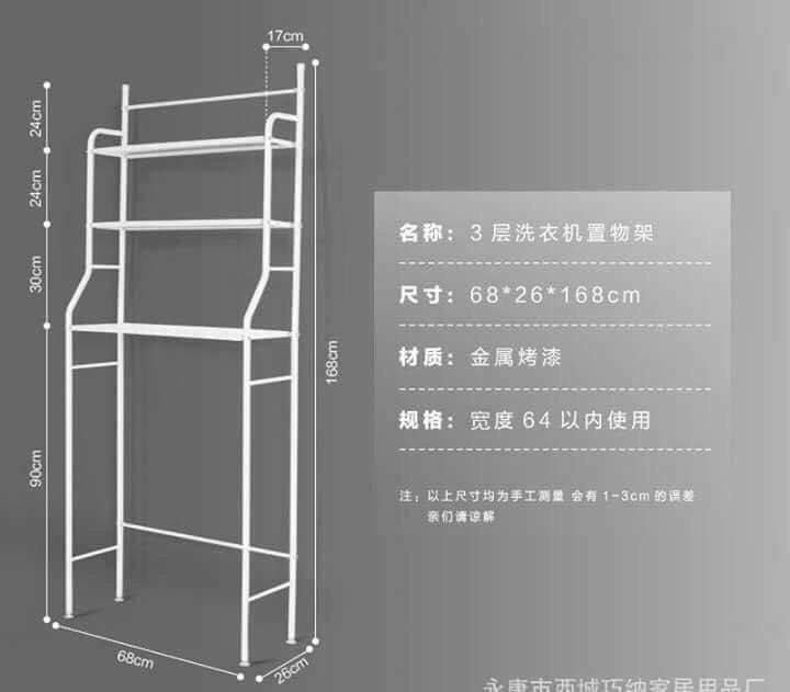• يأتي بشكل استاند رأسي معدني يحتوي على 3 رفوف متعددة الاستخدام، مما يساعد على ترتيب وتنظيم الحمام أو المطبخ.
