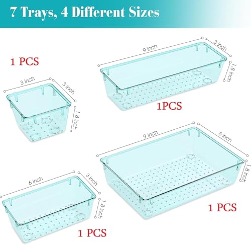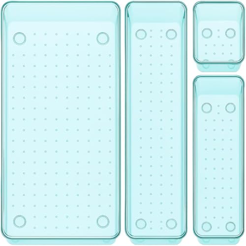Generic - مجموعة منظمات أدراج مستوردة، منظم مكياج للتسريحة بـ 4 أحجام، صناديق تخزين بلاستيكية شفافة للمكياج والمجوهرات وأدوات متعددة للمطبخ والحمام والمكتب وغرفة النوم (4 قطع، أزرق سماوي)