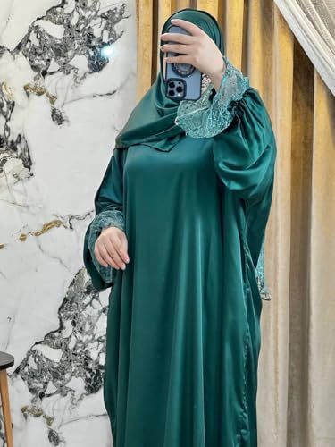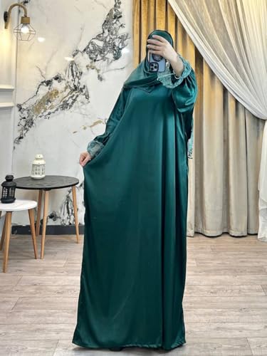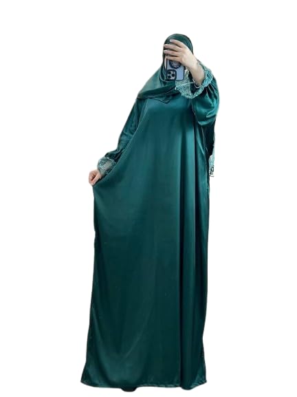 Generic - إسدال صلاة للنساء، مصنوع من الحرير الساتان، متعدد الألوان، مقاس حر، بتصميم عصري إسلامي، مع حجاب متصل وسحاب