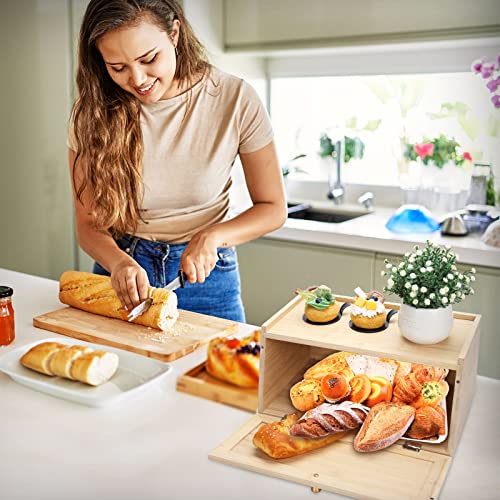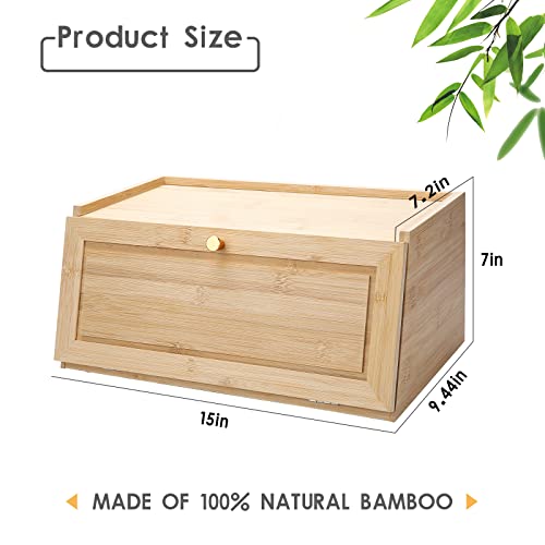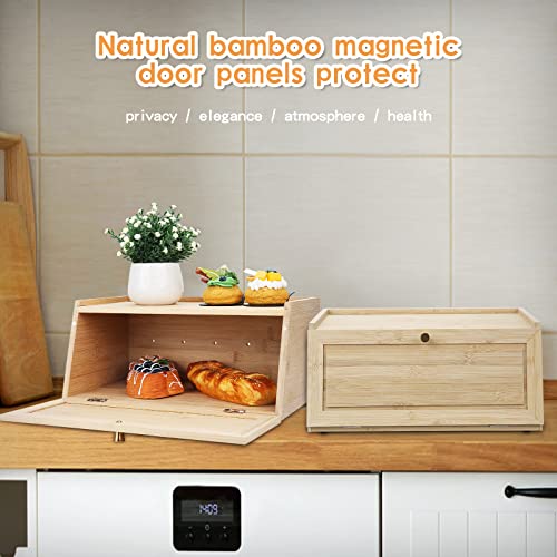 - صندوق خبز من الخيزران لطاولة المطبخ - حاوية تخزين خبز ذات سعة كبيرة مع حامل خبز بنافذة