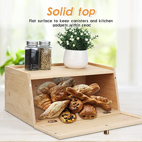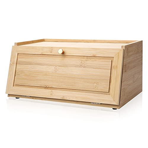 Infankey - صندوق خبز من الخيزران لطاولة المطبخ - حاوية تخزين الخبز بسعة كبيرة مع حامل خبز بنافذة