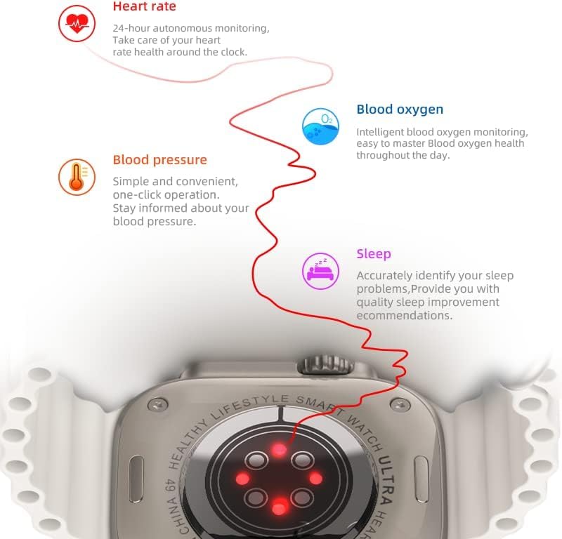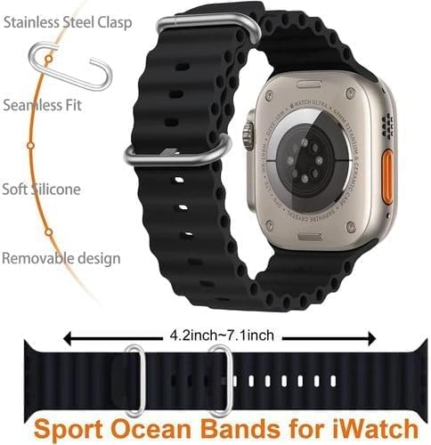 Generic - ساعة ذكية سمارت ووتش الترا 2 بشاشة عرض كاملة أنفينيت (1.99)، شحن لاسلكي، متوافقة مع جوالات ايفون واندرويد، سوار سيليكون (أسود)