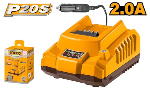 Ingco - انجكو شاحن بطارية سيارة 20 فولت 2.0 امبير، موديل FCLI2012، مدخل تيار مستمر 12-24 فولت، شاحن اداة طاقة محمول مع محول سيارة