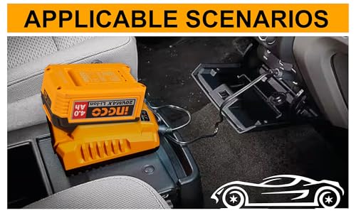 - مصدر طاقة متعدد الاستخدامات: شاحن بطارية 20 فولت مع جهد إدخال تيار مستمر 12-24 فولت، مصمم للشحن المريح في سيارتك باستخدام كابل محول السيارة المرفق