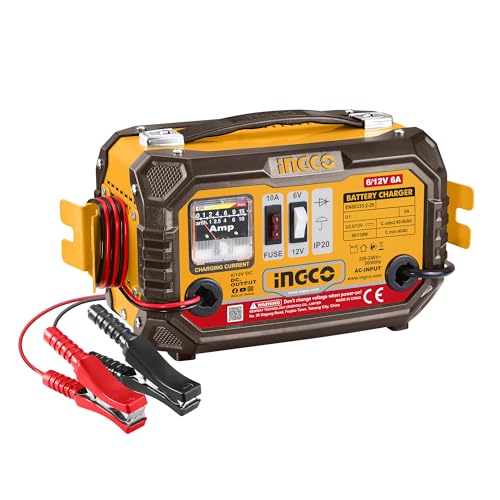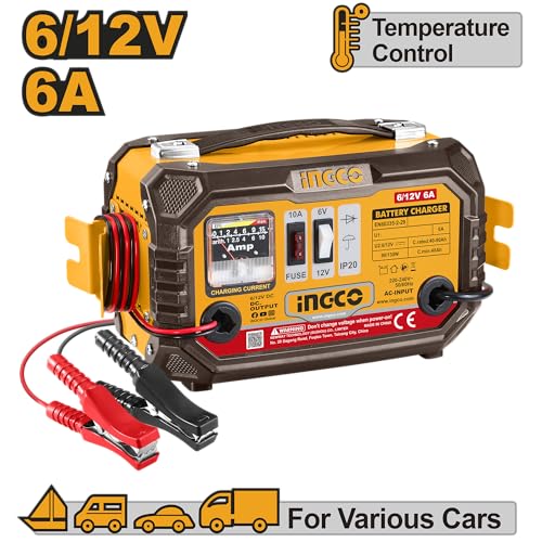 Ingco - شاحن بطارية سيارة 6 فولت/12 فولت ING-CB1501، مع خاصية التحكم فى درجة الحرارة، تيار شحن 6 أمبير، سعة 40 إلى 90 أمبير في الساعة من انجكو