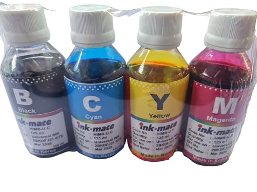 ink mate - مجموعة حبر سائل لإعادة تعبئة خراطيش طابعة كانون اتش بي وابسون بأربعة ألوان