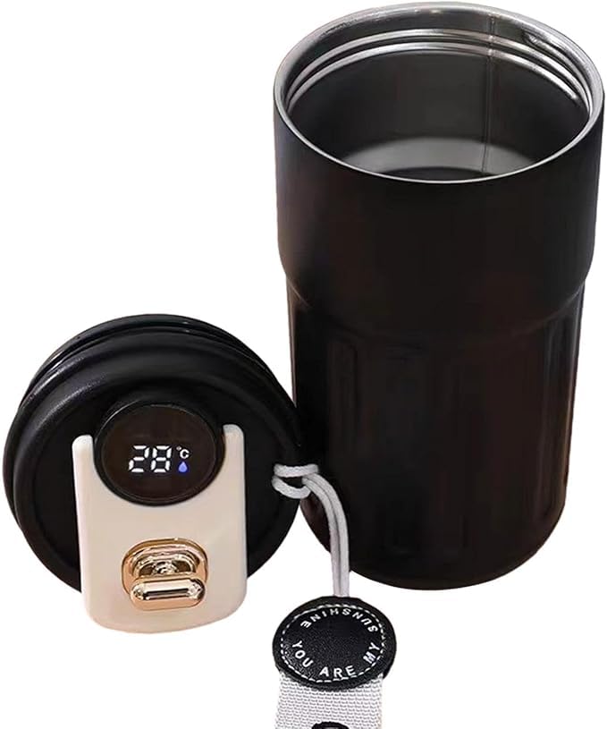 Generic - كوب قهوه معزولة، من الفولاذ المقاوم للصدأ مع شاشة عرض درجة الحرارة الذكية و (اسود)