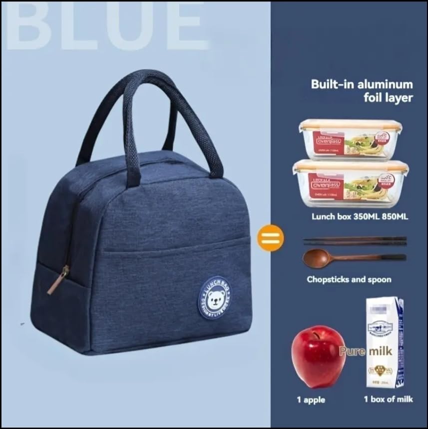 Generic - حقيبة غداء معزولة حرارياً مقاومة للماء، مناسبة للعمل والطلاب والأطفال، شنطة تبريد للنزهات، أزرق