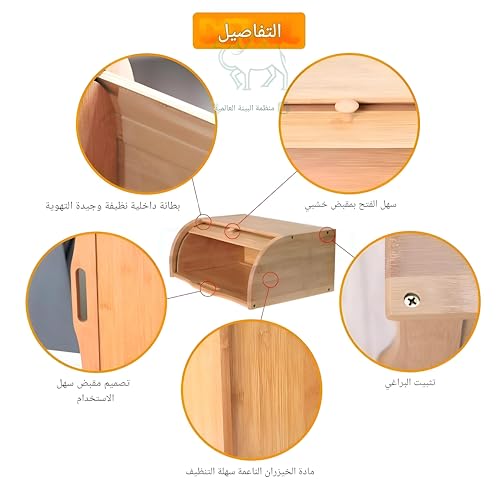 - مصنوع من مادة الخيزران المتينة، تم تصميم صندوق الخبز لتحمل قسوة الاستخدام اليومي دون خطر التشوه أو الكسر. تضمن جودة هيكلها القوية طول العمر، مما يسمح لك بتخزين الخبز والوجبات الخفيفة دون القلق بشأن التلف الناتج عن الاستعمال. كما توفر المادة جاذبية جمالية، مما يجعلها إضافة أنيقة لأي مطبخ سواء كنت في المنزل أو في المخبز أو تعمل من مركز تسوق.