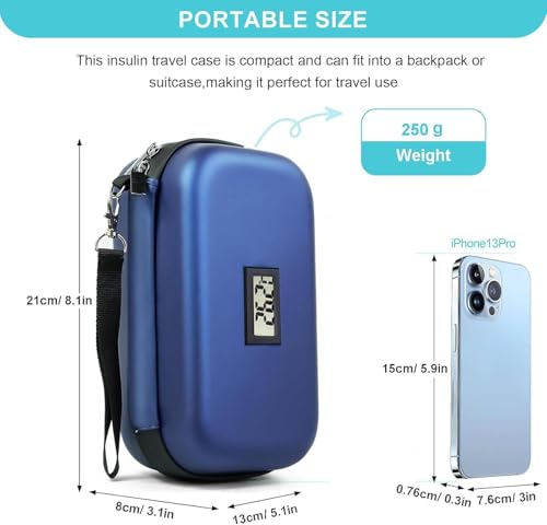 - ✅ حل آمن وضروري لمرضى السكري أثناء السفر: توفر وسيلة موثوقة للحفاظ على الأنسولين في درجة الحرارة الموصى بها، مما يقلل من مخاطر تلف الدواء ويحافظ على فعاليته، ويمنح المستخدم حرية الحركة والتنقل بثقة واطمئنان في أي وقت وأي مكان.