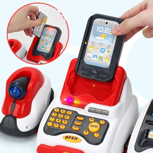 - شاشة وآلة حاسبة: تحتوي على شاشة رقمية ملونة ولوحة مفاتيح وظيفية بأزرار صفراء وحمراء لتعليم الأطفال الأرقام والحساب