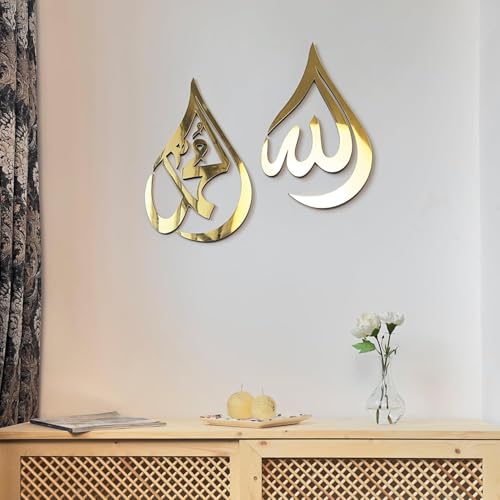 - تصميم فاخر: لوحة فنية جدارية إسلامية أنيقة تحمل كلمة "الله" بالخط العربي مع لمسة نهائية عاكسة ذهبية فاخرة، مثالية لديكور المنزل العصري