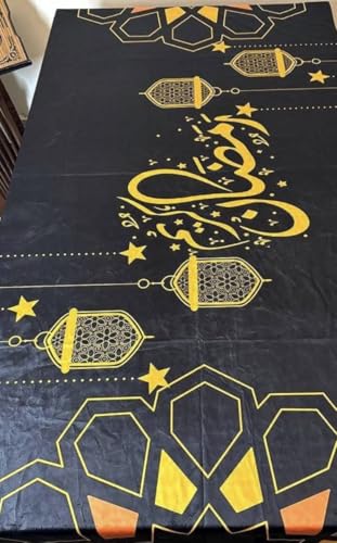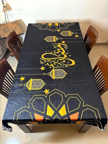 Generic - غطاء طاولة بتصميم إسلامي، أسود وذهبي، زخارف فوانيس وخط عربي، ديكور رمضاني مقاس 200*140