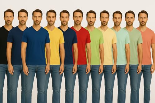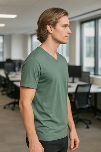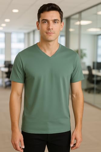ISTANBUL MODEL - تي شيرت بأكمام قصيرة ورقبة V للرجال من اسطنبول موديل، عبوة من 1 قطعة، تي شيرت سادة، 95% قطن و5% سباندكس (ليكرا)، قصة كلاسيك
