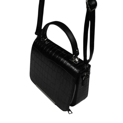 Generic - حقيبة كروس بودي جلد كروكوديل إيطالي، اسود، 22×18 سم، 2 جيب رئيسي وجيب خلفي، حزام كروس قابل للتعديل، إكسسوار فاخر