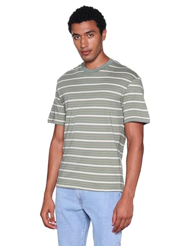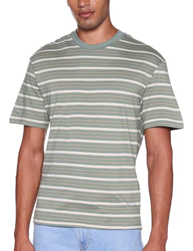 JACK & JONES - تيشرت مخطط برقبة دائرية ضيقة وأكمام قصيرة للرجال من جاك اند جونز (عبوة من 1 قطعة)