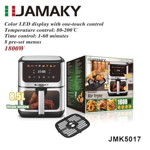 Generic - قلاية هوائية صحية من جاماكى سعة 8.5 لتر وبقدرة 1800 واط ديجتال بدون زيت مع شاشة لمس LCD تقنية التسخين الحراري السريع مع امكانية برمجة الوقت ودرجة الحرارة للقلي والشواء والتحميض ضمان سنة - jmk 5017