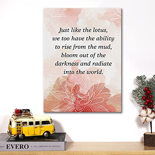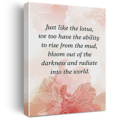 JerLoe - لوحة فنية جدارية من القماش بتصميم اقتباس زهرة اللوتس تحفيزي لليوغا واليوغا، لوحة قماشية ايجابية للمكتب والمنزل وديكور الحائط هدية مؤطرة 12 × 15 انش
