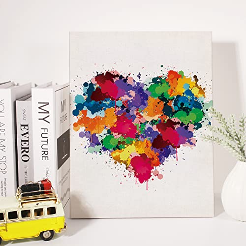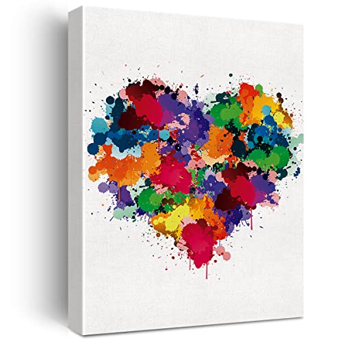 JerLoe - لوحة فنية جدارية قماشية على شكل قلب بالوان مائية مطبوعة على شكل قلب حب لوحة جدارية مؤطرة لحفلات الزفاف وحفلات استقبال الزفاف، هدية 12 × 15 انش، من جيروي، متعدد الألوان