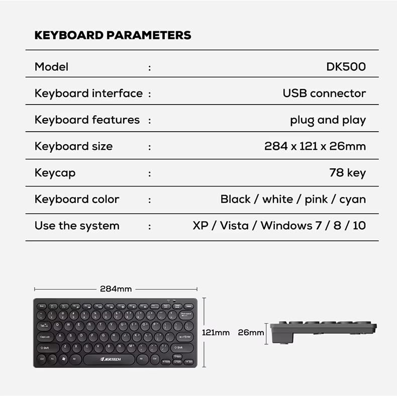 Generic - لوحة مفاتيح صغيرة صامتة باللغة الإنجليزية والعربية بـ 78 غطاء مفتاح رفيع بلون الشوكولاته، كيبورد مريح للمكتب DK500 من جيرتيك، أبيض