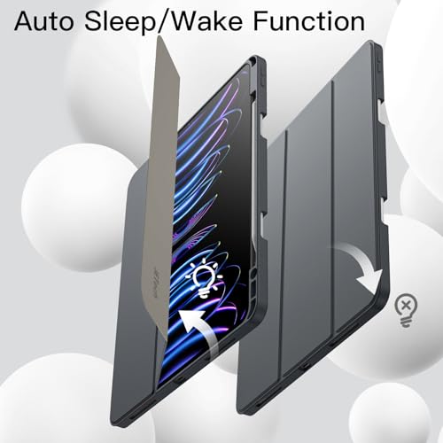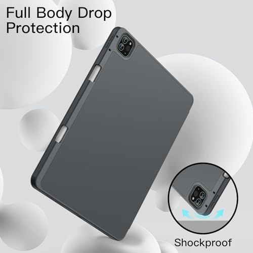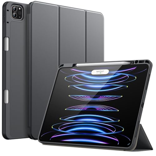 JETech - جراب حماية لاي باد برو 12.9 بوصة الجيل السادس-الخامس موديل 2022-2021 مع حامل قلم دعم شحن القلم الثاني تابلت رفيع ظهر ناعم من البولي يوريثين الحراري رمادي سبيس