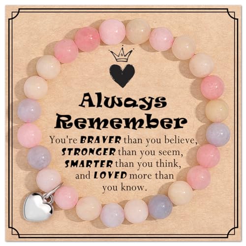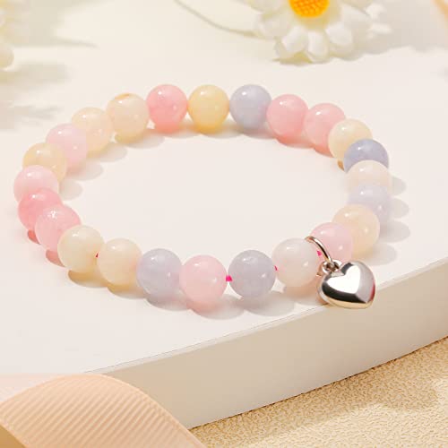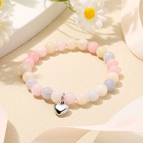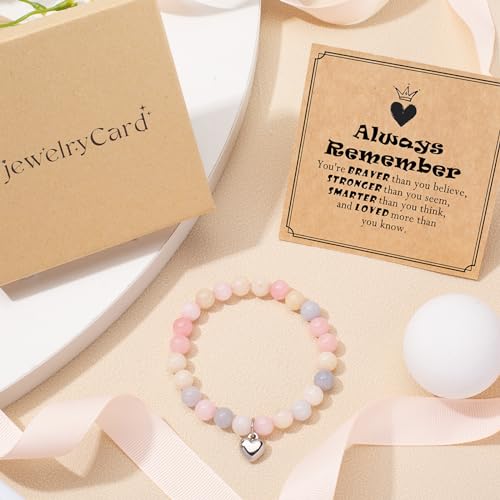 jewelrycard - إسورة من جويلري كارد للبنات، مصنوعة من الحجر الطبيعي والحبل المطاطي، بلون وردي فاتح وتصميم عصري، مقاس 17.8-30.5 سم