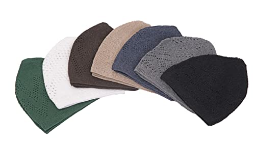 JILANI HANDICRAFT - 7 قطع قبعة الصلاة الإسلامية المحبوكة كوفي توبي كروشيه من الأمين نحيفة بدون حواف ألوان متعددة مقاس واحد الرجال