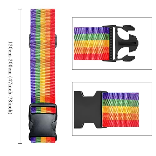 Jmuoyld - حزام شنط سفر قابل للتعديل مزود بقفل مشبك سريع الفتح بألوان زاهية (قوس قزح) من جمويلد، عبوة من حزامين
