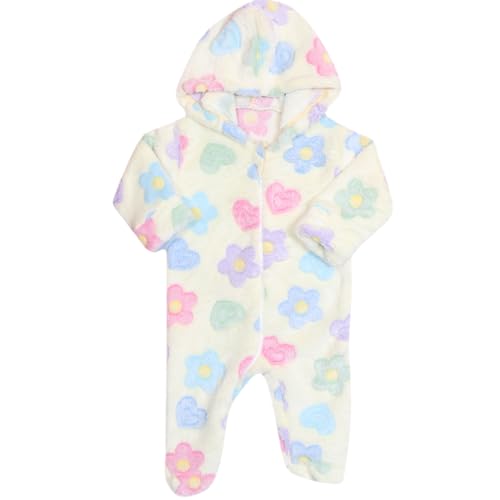 Jockey M M - سالوبيت بكباسين بغطاء للرأس وأكمام طويلة من قماش بولار بطبعة زهور للبنات بعمر يوم إلى 3 شهور من جوكي
