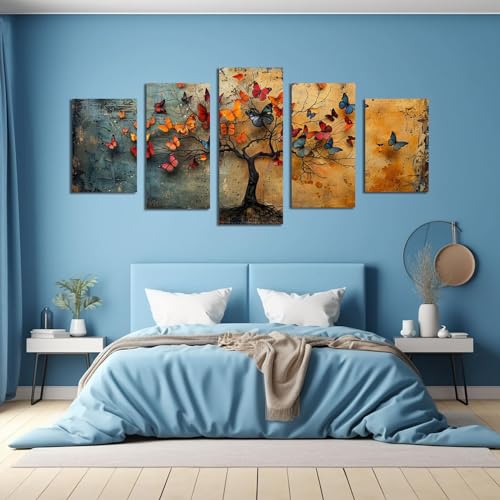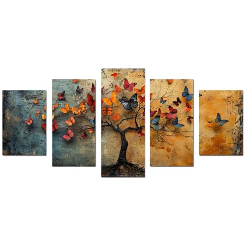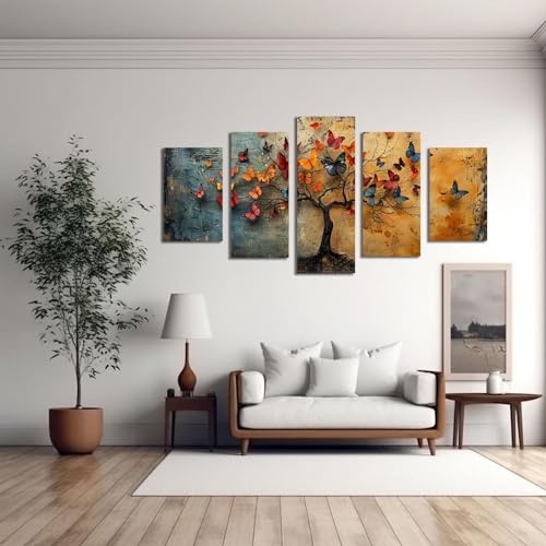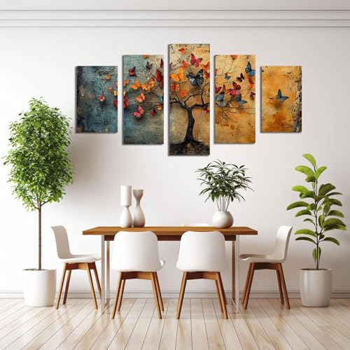 JOSUE - لوحة فنية من القماش بتصميم شجرة الحياة بنمط تجريدي للديكور من جوسوي، بني - 5 قطع