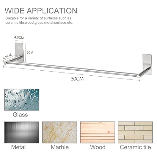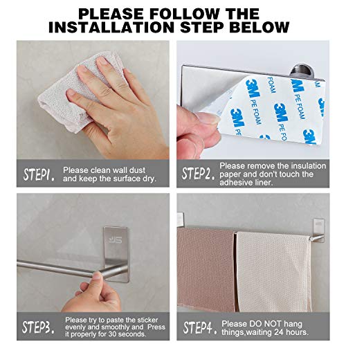 JS - حامل فوط ذاتي اللصق بدون حفر من الستانلس ستيل 304 من جيه اس، حامل مناشف الشاي يثبت على الحائط 30 سم