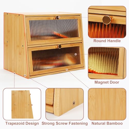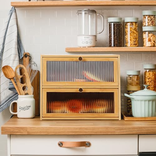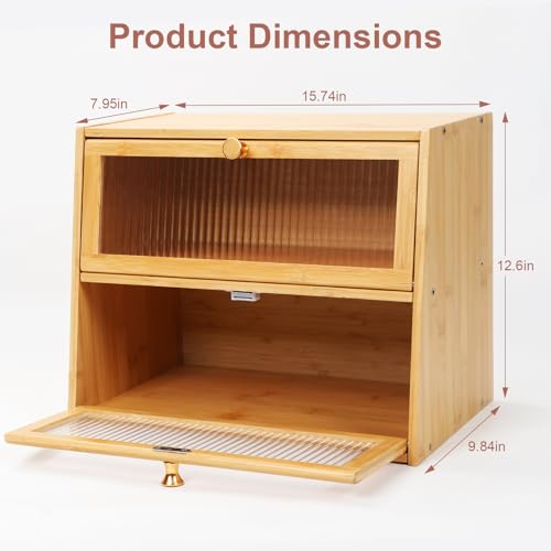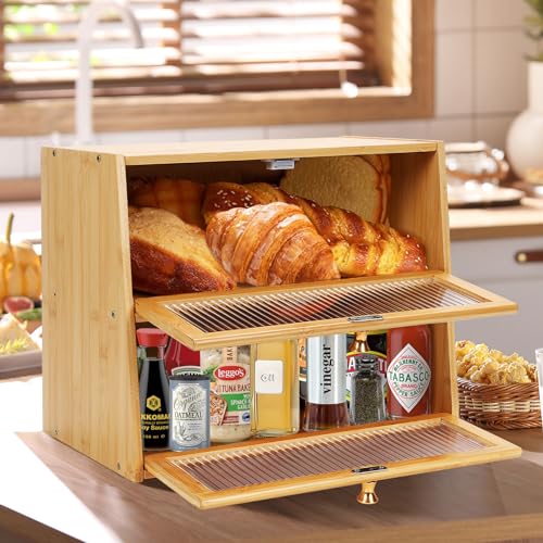 JUATPNIY - حافظة خبز من البامبو لسطح المطبخ من جواتبني، حافظة خبز خشبية كبيرة مزدوجة الطبقات، علبة تخزين الخبز بتصميم بيت المزرعة، حامل خبز (بامبو طبيعي)
