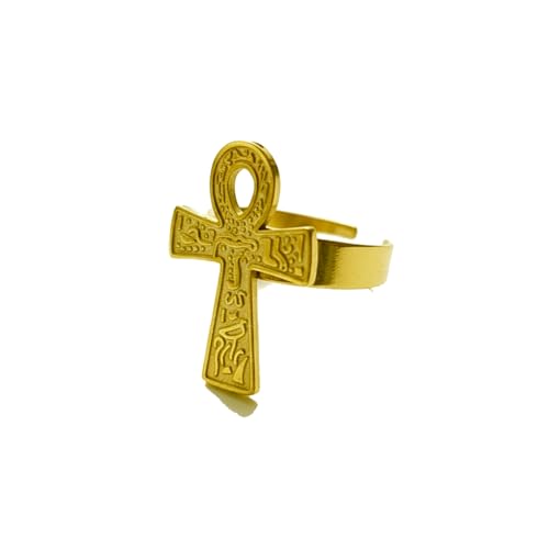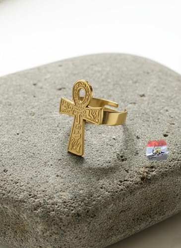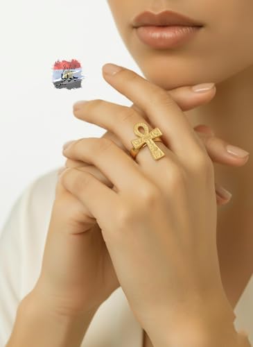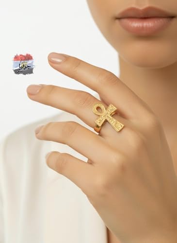 Julia Store - خاتم عتيق مطلي بالذهب عيار 18 قيراط لمفتاح الحياة المصري القديم من جوليا ستور، خاتم جميل ورائع للنساء والرجال، خاتم تميمة الحظ المصري القديم لحماية اليهود