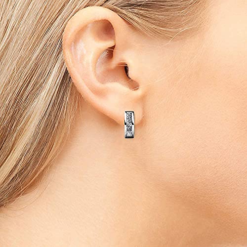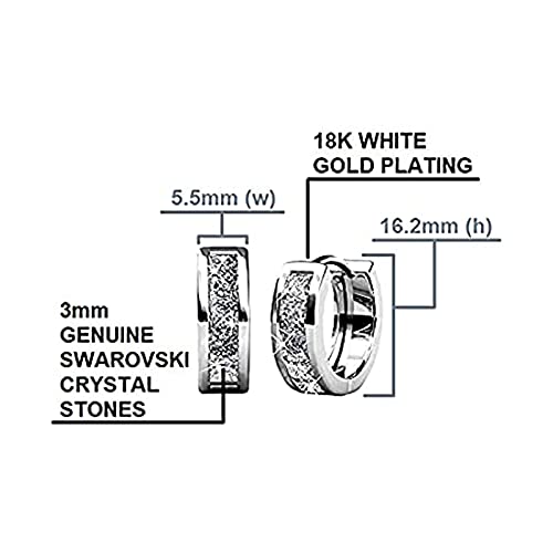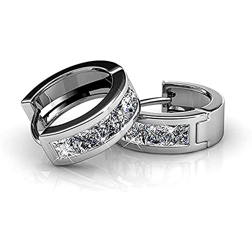 Julia Store - حلق كريستال دائرية مطلي بالذهب الابيض 18 قيراط ومزين بفصوص سواروفسكي، فضي صغيرلامع من جوليا ستور، للنساء