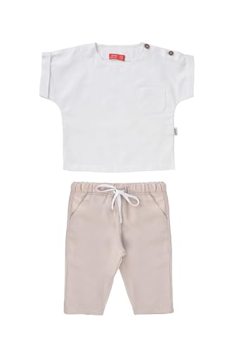 junior - طقم بيجامة مكون من تيشرت بأكمام قصيرة وبنطلون برباط للأولاد الصغار بعمر 2 إلى 9 شهور، عبوة من قطعتين