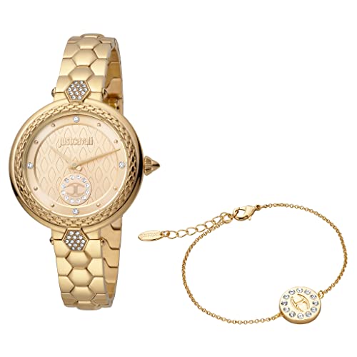 Just Cavalli - ساعة للنساء بسوار ستانلس ستيل ذهبي من جست كافالي, ذهبي، انالوج