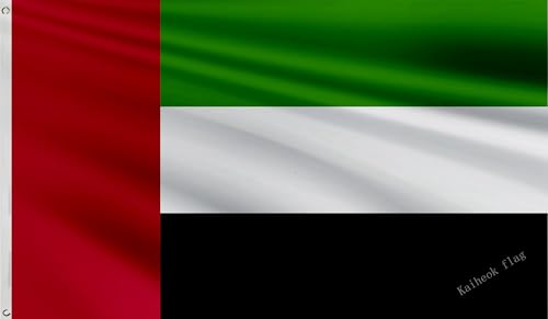 kaiheok - علم الامارات العربية المتحدة مقاس 3 × 5 قدم / 90 × 150 سم، علم الامارات العربية المتحدة من البوليستر مع فتحتين معدنيتين - راس قماش وخياطة مزدوجة - مثالي للطيران في منطقة الرياح المنخفضة.