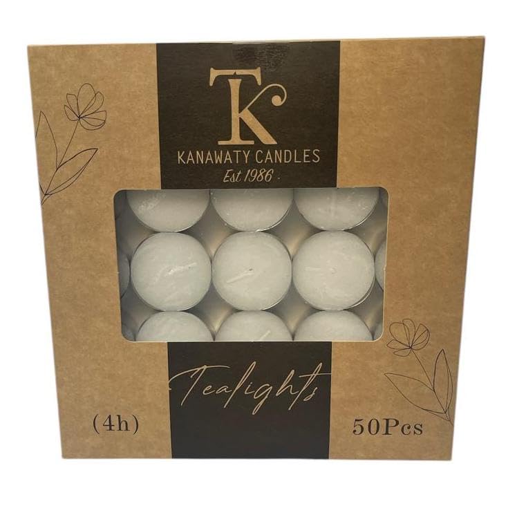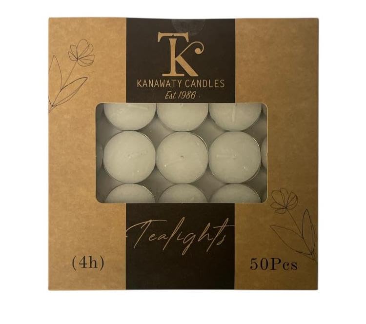 Kanawaty - شموع تيلايت وقت احتراق 4 ساعات من كاناواتي، 50 قطعة