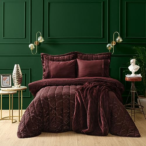 Karaca Home - طقم كوفرتة من تشكيلة المهر أحمر (كلاريت ريد) مكون من 8 قطع من كاراكا