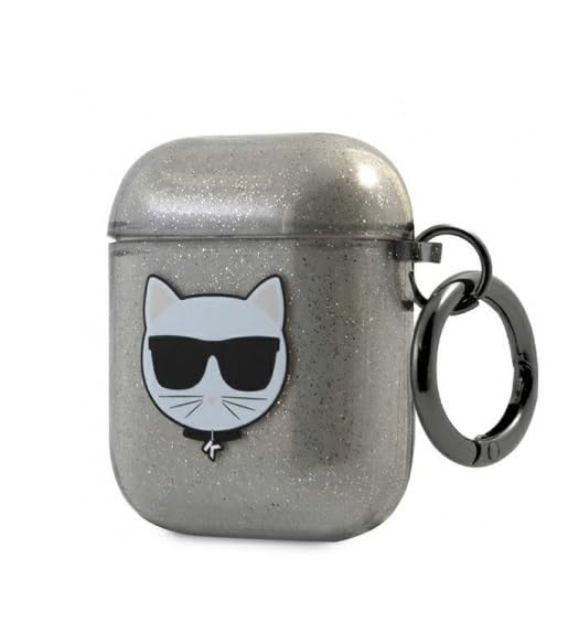 CG MOBILE - جراب حماية جليتر من البولي يوريثين المقاوم للحرارة بطبعة القط شوبيت لسماعات آبل ايربودز 1/2 من كارل لاغرفيلد، لون أسود