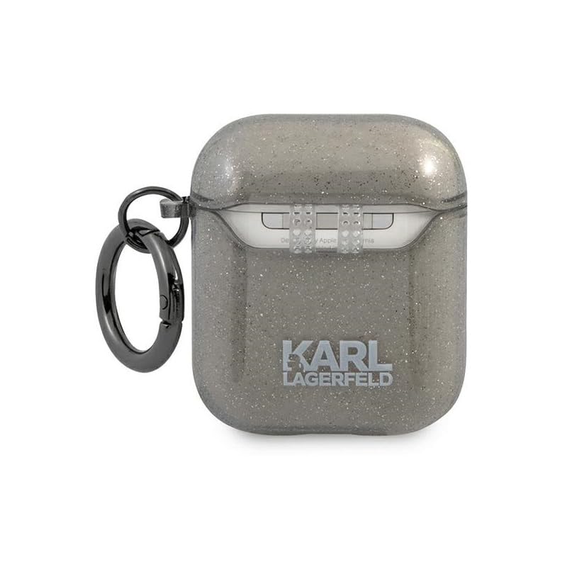 • جراب حماية جليتر من البولي يوريثين المقاوم للحرارة بطبعة القط شوبيت لسماعات آبل ايربودز 1/2 من كارل لاغرفيلد، لون أسود