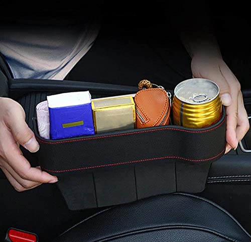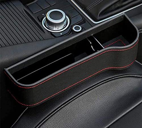kaungka - منظم جيب جلدي اسود لمقعد السيارة الجانبي للفجوات مع حامل كوب وحامل اكواب موبايل ومساحة لجمع العملات المعدنية من كاونجكا