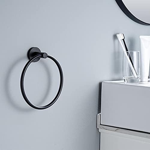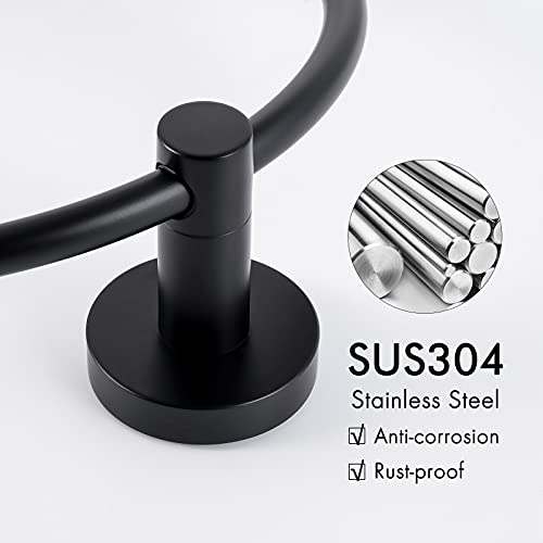 KES - حامل مناشف اليد بحلقة سوداء غير لامعة للحمام، حامل مناشف حمام المطبخ، شماعات شديدة التحمل تخزين دائرية تثبت على الحائط مصنوعة من الستانلس ستيل 304 من كيس، موديل A2180DG-BK