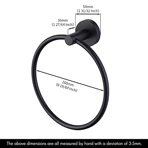 - خاتم كبير الحجم: القطر الداخلي لحلقة المنشفة السوداء 6.3 انش (160 ملم)، مناسب لمعظم المناشف. المسافة بين الحلقة إلى الحائط 2.5 انش (يمكن الحفاظ على المناشف نظيفة بعيدًا عن الحائط). يمكنها حمل ما يصل إلى 5 كجم (11 باوند)