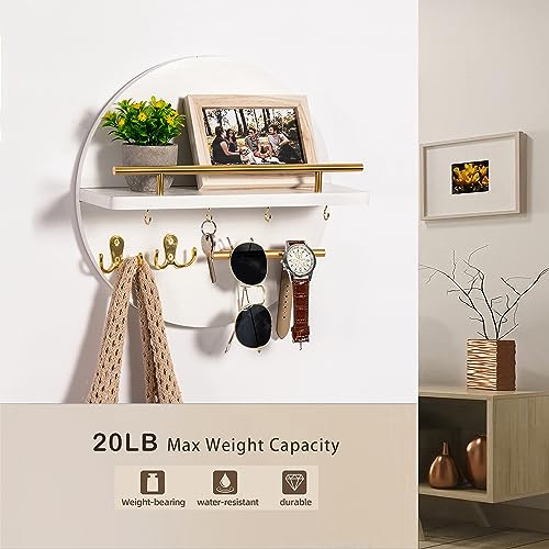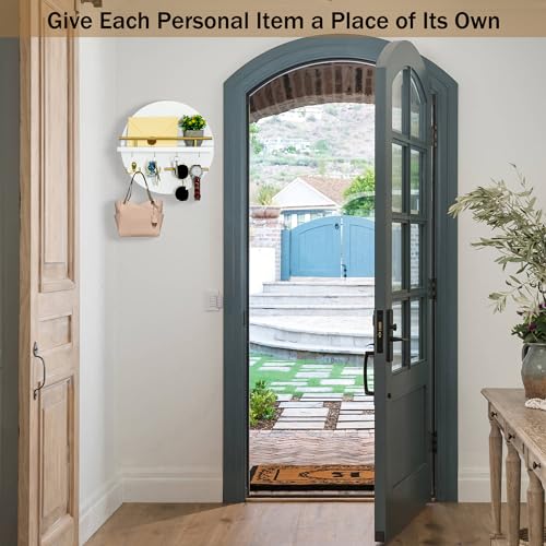 dreampossible - حامل مفاتيح مع رف وخطافات بتصميم ريفي فريد لتزيين الحائط، منظم بريد يثبت على الحائط مع حامل نظارة شمسية، حامل مفاتيح بتصميم دائري لطيف للمدخل والممر وديكور المنزل (لون أبيض)