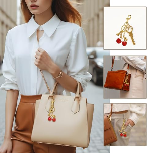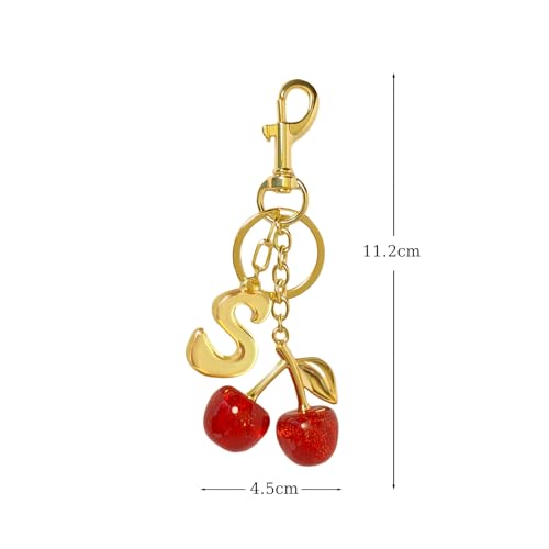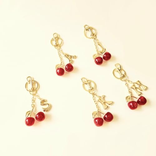 Flvkev - سلسلة مفاتيح على شكل حرف الكرز على شكل فقاعة على شكل حرف اولي للمحفظة للنساء، سلسلة مفاتيح لطيفة للسيارة، اكسسوارات شنطة اليد وشنطة الظهر