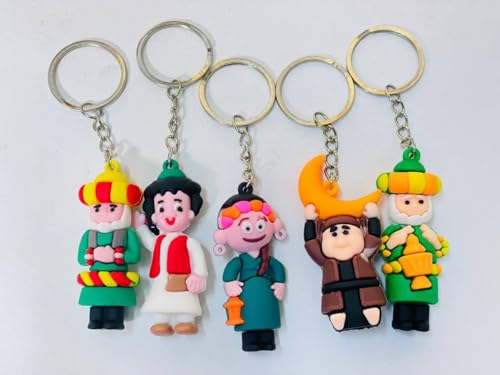 - تصميمات شخصيات ملونة: تتميز هذه المجموعة المكونة من 12 ميدالية مفاتيح بتصاميم ساحرة مرسومة يدوياً وبألوان زاهية، وتضم تشكيلة متنوعة تشمل شخصيات كرتونية، وشخصيات تراثية، وأشكالاً عصرية مبتكرة تضفي لمسة من التميز والخصوصية على مفاتيحك أو شنط اليد أو شنط الظهر.