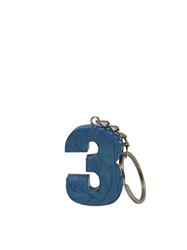 Generic - سلسلة مفاتيح على شكل رقم 3, أزرق, One Size، مادة صمغية