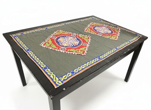 Generic - مفرش طاولة تراثي من قماش الدك الخيامي الثقيل، لون زيتي مع تصميم رمضاني أنيق، ديكور منزلي فاخر
