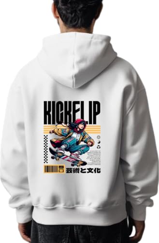 Generic - KICKFLIP كنزة ذات قبعة ظهر أبيض